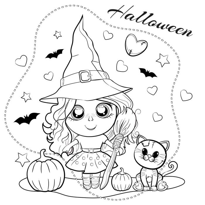 Halloween Puppy And Kitten Coloring Pages